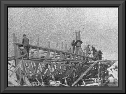 Le "bateau-facteur", ici en construction Il fût le premier bateau bâtit à Portneuf et appartenait à Célus Emond