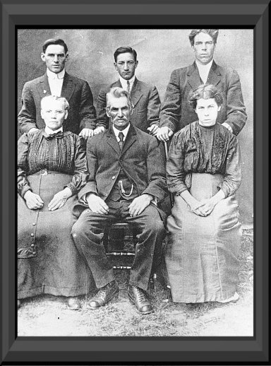 1ière rangée : Olive Gagné (marié à Alphée Fortin), Alphée Fortin et Marie-Louise Poitras (mariée à Alphonse Fortin) 2ième rangée : Yves Fortin, Émile Fortin et Alphonse Fortin